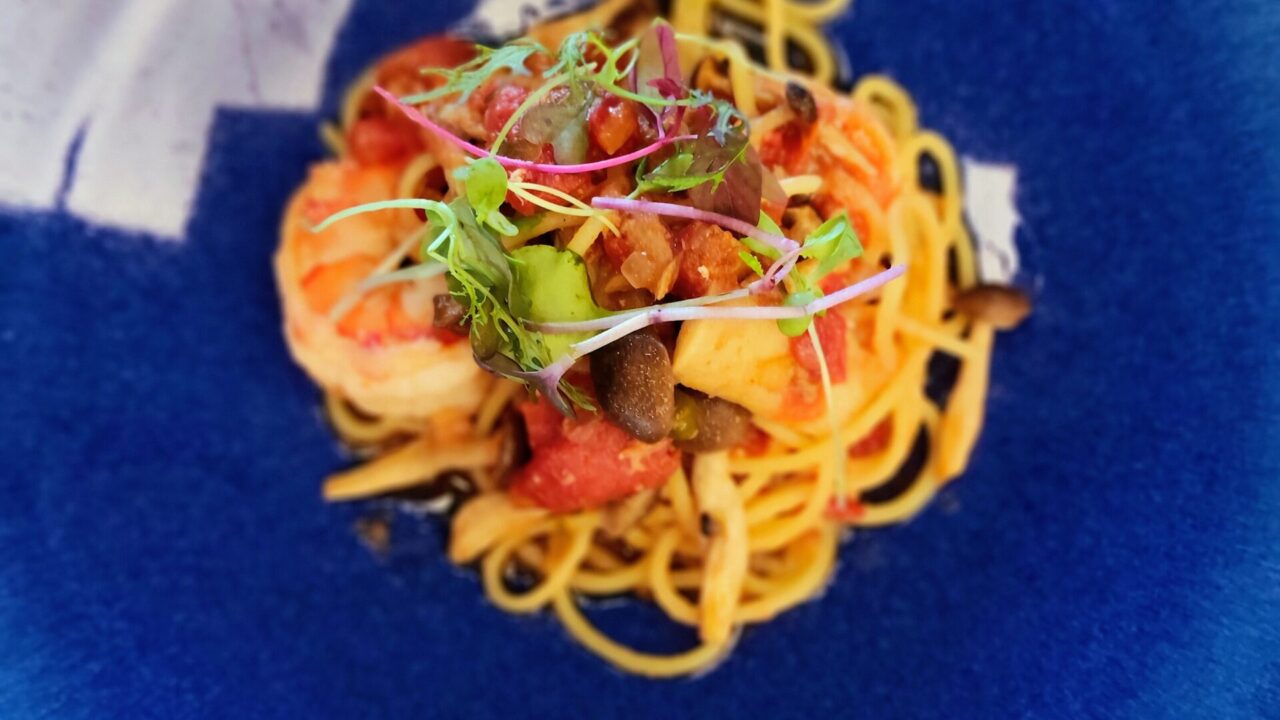 スパゲッティーボスカイオーラ ジャンボシュリンプと茸。