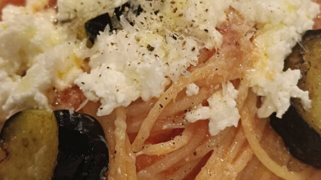 ● 揚げ茄子と自家製リコッタのノルマ風スパゲッティ