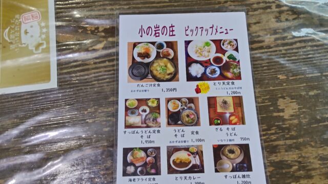 「小の岩の庄」では鶏天定食以外にも、地元の食材を使った定食メニューがいくつか揃っています。常連さんの中には「今日はとり天定食」「次はだんご汁定食」と気分で注文を変える方も多いそう。私自身も次に訪れる際は、だんご汁定食を試してみたいと思っています。