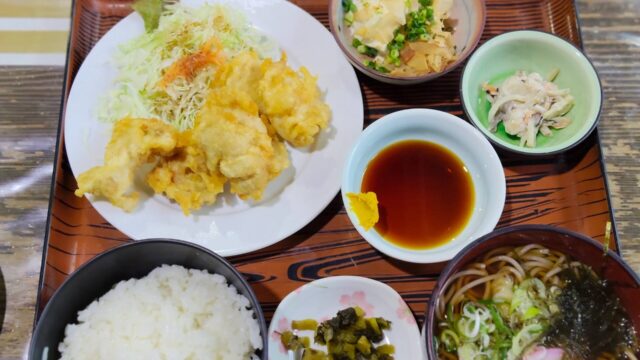 この日注文したのは、お店自慢の「鶏天定食」。運ばれてきた瞬間から食欲をそそる香りが広がります。ひと口かじると、サクサクの衣の中からジューシーな肉汁がジュワ~っと溢れ出し、ごはんとの相性が抜群!思わずお箸が止まらなくなってしまう美味しさでした。