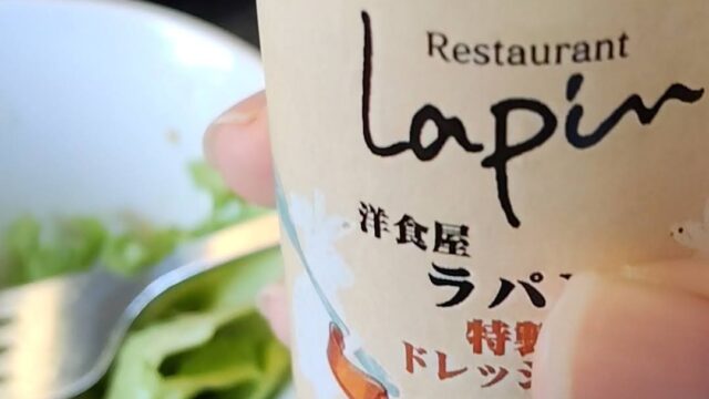 そして驚いたのが、ラパン特製のオリジナルドレッシング。ランチセットのサラダにかけてみると、甘みとコクが絶妙で、思わず「おかわりしたい!」と思ってしまう美味しさでした。昔からこのお店を知っていたのに、こんな美味しいドレッシングがあるとは…ちょっと感動。