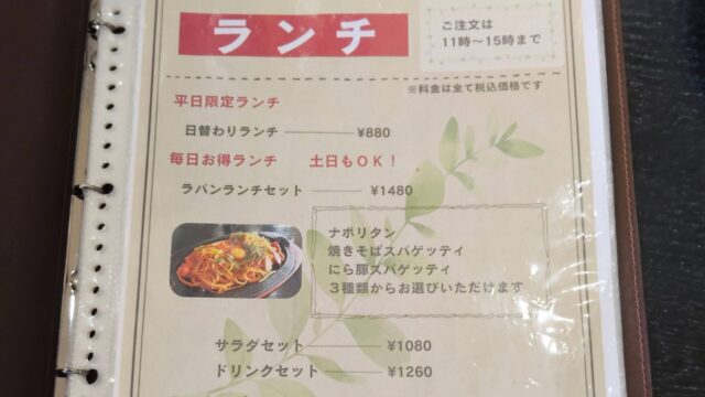 ランチはラパンランチセットを注文。ナポリタンor焼きそばスパゲッティorにら豚スパゲッティの3種類から選べます。