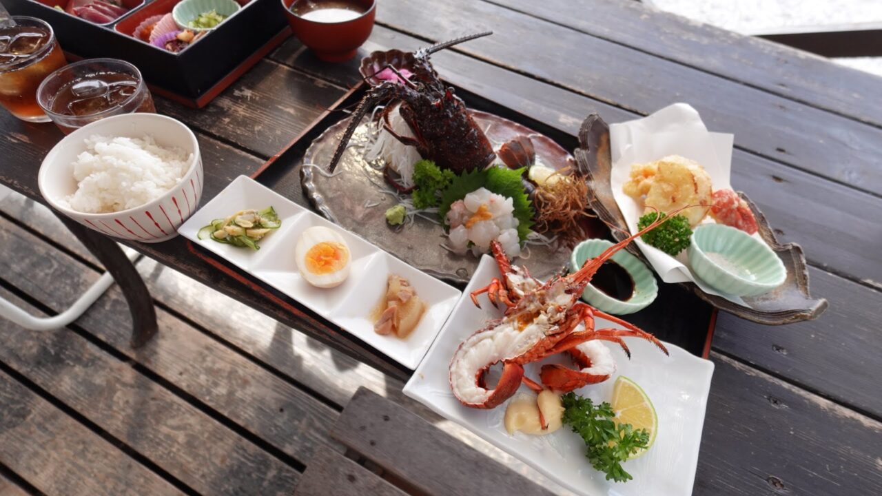 波の音に包まれながらいただく伊勢海老御膳は、贅沢そのものです。