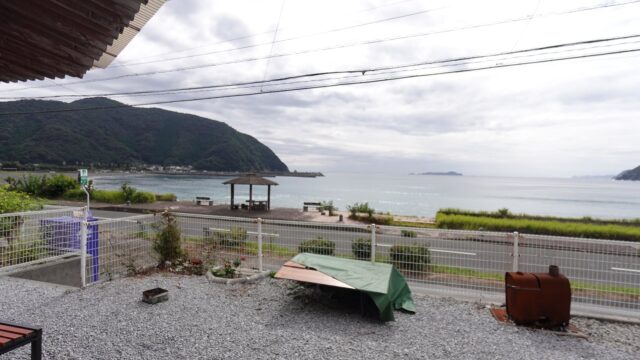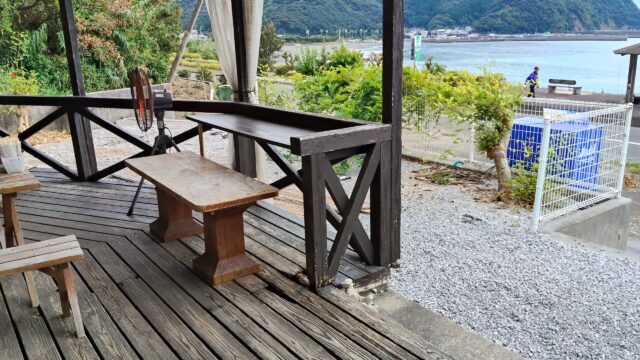 目の前には青い海!(この日は曇りでしたが…)BGMは波の音、そして時々サーファーが波に乗る姿も。