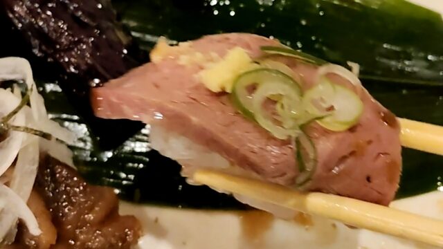 なすのお寿司は、くたくたに火が通っていて、口の中でとろける感じ。なすのお寿司が二貫入っていたのは嬉しかった💕エリンギも油であげててこってりしていておいしかったです。今まで「野菜のお寿司なんて…」と思っていた自分の価値観が、ここで一気にひっくり返りました。