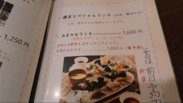 こちらは週末スぺシャルランチ(土日祝のみの特別なランチ)のおまかせランチ(手作りデザートコーヒー付き)1600円